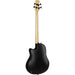 Ovations 4-string bass guitar features a solid-spruce top with scalloped X-bracing for superior note definition, and its classic Mid-Depth cutaway composite body delivers balanced acoustic tone and is comfortable to hold and play. Soundports on the bass-string side of the instrument enhance lower-frequency projection. The bass also features a satin-finished maple neck and a black-stained rosewood fretboard. Assuring correct string tension and intonation, a full 34 scale delivers harmonically rich timbres across the instruments entire range. With its onboard compressor, the OP-Pro Studio preamp provides control over the attack and sustain of every note.