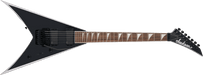 The Jackson® X Series King V™ KVX-MG7 has a poplar body, 26.5” scale length and through-body maple neck with scarf joint and graphite reinforcement to guard against climate-induced warping. Hosting 24 jumbo frets, the 12"-16" compound radius bound laurel fingerboard curves more dramatically at the nut for easy chording and flattens out as it approaches the neck joint for low-action bends without fretting out.
