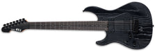 Guitars in the LTD 1000 Series are designed to offer the tone, feel, looks, and quality that working professional musicians need in an instrument. With seven strings and a 27” baritone scale, the SN-1007HT Baritone is our first extended scale guitar in the SN Series. This guitar is ready to explore the depths of modern metal while looking as cool as it sounds with a sandblasted Black Blast finish on its swamp ash body. It offers a bolt-on roasted maple neck with a compound radius for maximum speed and comfort. Its Macassar ebony fingerboard includes 24 extra-jumbo stainless steel frets, mother-of-pearl dot inlays, and is scalloped from frets 17-24. Components on the SN-1007HT Baritone include a 48mm black bone nut, a brushed black pickguard, dome control knobs, LTD locking tuners, and a Hipshot hardtail bridge with string thru body. It features a set of Fishman Fluence Modern Humbuckers (alnico in the neck position, ceramic in the bridge), with a push-pull control to activate each pickup’s second voicing.
