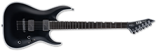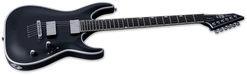 The LTD Deluxe MH-1000NT Bold Binding in Black Satin finish features double-thick silver painted binding on the body and headstock, set-thru construction at 25.5” scale, a mahogany body with maple cap, and a three-piece maple neck. Its Macassar ebony fingerboard has a compound radius, offset block inlays, and 24 extra-jumbo stainless steel frets. Components include chrome hardware, a TonePros locking bridge with string-thru-body, LTD locking tuners, and a pair of Fishman Fluence Modern 3-Voice Humbucker pickups with voice selection on a push-pull controls.