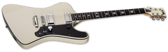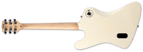 The LTD RZK-III is the newest signature model for Richard ZK, the legendary co-founder and lead guitarist for Rammstein. Beginning with the smooth, flowing curves of the Phoenix body shape, the RZK-III is being offered in a classy Olympic White finish with an RZK graphic on the back of the body and black binding on the body, neck, and headstock. It features neck-thru-body construction at 25.5” scale, with alder body wings and a three-piece satin-finished maple neck and rosewood fingerboard with 22 extra-jumbo stainless steel frets and glow-in-the dark side markers. A series of special components are included on the RZK-III, like a TonePros locking bridge and tailpiece that are both recessed, a brushed black pickguard, a reversible “kill switch”, LTD locking tuners, and a set of Fishman Fluence Richard Z Kruspe signature pickups with a push-pull control and a mini-toggle switch to select voicings. Includes ESP hardshell form fit case.