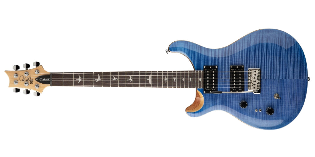 The Custom 24 is the quintessential PRS guitar: the iconic guitar that started it all back in 1985. The Custom 24-08 keeps all the foundational specs of the instrument, while taking the Custom platform to new sonic territories. Like the Core Series instrument, the SE Custom 24-08 features two mini-toggle coil-split switches that individually split the humbuckers into true single coils for a total of eight pickup configurations. Classic design elements include a maple top, mahogany back, rosewood fretboard, 24 frets, 25" scale length, bird inlays, signature headstock logo, and PRS patented molded tremolo.