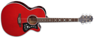The GN75CE NEX-Style Acoustic/Electric Guitar from Takamine features a scaled-down jumbo body constructed with a solid spruce top, and alluring quilted maple back and sides. Aside from its good looks, the GN75CE delivers a rich and articulate tone with a bright edge that complements vocals beautifully, and works equally well for solo performance and playing with a full band. Its maple neck includes a 21-fret rosewood fingerboard with a 12" radius, eye-catching oval pearloid inlays, and a rosewood headcap. Additional features include a rosewood bridge, a synthetic bone nut and split bridge saddle, a set of gold tuning machines with white buttons, and an attractive "Grass Flower" pattern on a black pickguard which enhances the guitar's elegant wine red gloss finish. For electronics, the GN75CE is equipped with a Takamine TP-4TD preamp system, which includes a built-in tuner, a 3-band EQ, and a gain adjustment knob, giving the player better control of the guitar's tone when used with amplification for live performance.