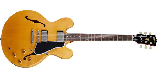 The Historic Reissue ES-335 is back and better than ever, thanks to a year of studying, scanning, and listening to original examples. The expert craftspeople at Gibson Custom Shop have rendered every contour, profile, inlay, and color of the priceless vintage models in magnificent detail. The result is a playing and ownership experience that will keep you coming back for more. The 1959 ES™ Reissue models feature rounded cutaways, Medium C-shape neck profiles scanned from originals, dot inlays, and vintage-replica parts. It also features Light Aging by the skilled artisans of the Murphy Lab. The Murphy Lab Light Aged finish treatment, paired with lightly aged hardware, simulates decades of natural play wear, giving it the unique character, vibe, and feel of an original example from the Gibson Golden Era.