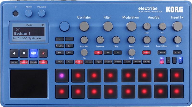 The Korg electribe2BL is a synthesizer-based production machine that turns inspiration into sound at maximum speed. It contains numerous analog oscillators and a wide variety of filters. Whether you're selecting sounds or editing them, all operations are performed simply by using the top panel knobs. In addition, a variety of input interfaces optimized for inputting rhythm, bass, or melody allow you to smoothly create sequences as fast as you can think.