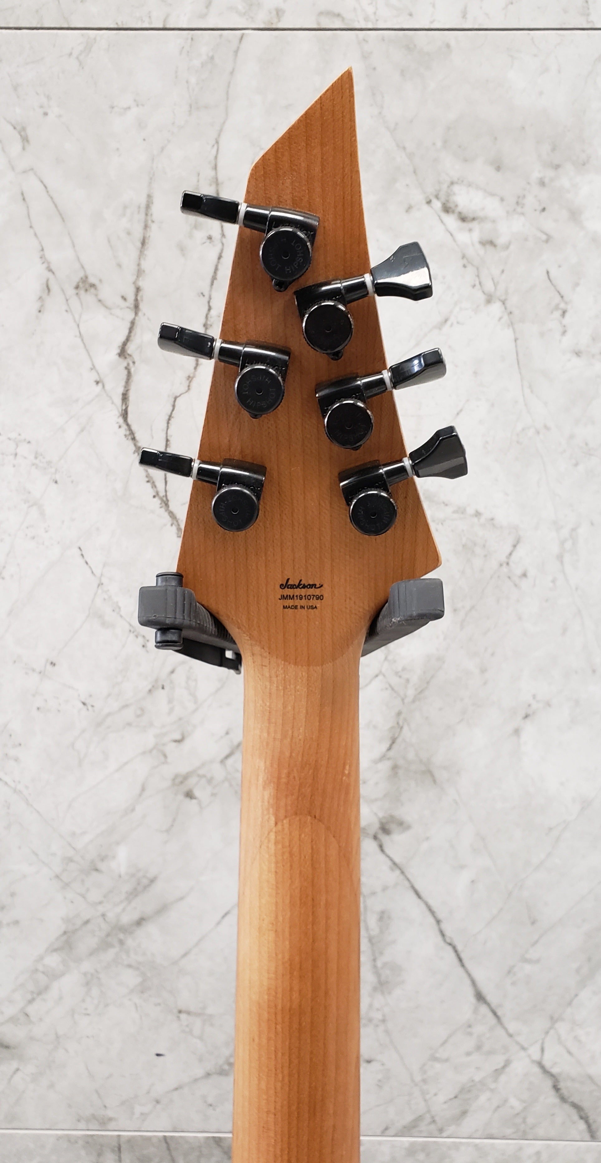 The guitar’s tonally versatile sound comes from Mansoor's dual Bare Knuckle Juggernaut humbucking pickups with brushed chrome covers, five-way switching, single volume control knob and a push-pull (on/off) tone knob. Other premium features include a matching Jackson reverse 3x3 AT1 headstock with three Hipshot® open-gear locking tuners on each side and a fixed Hipshot hardtail bridge, Dunlop® dual-locking strap buttons and more.