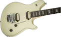 The EVH Wolfgang USA features a basswood body with arched maple top, bolt-on quartersawn maple neck, 12” – 16”-inch compound radius ebony fingerboard with 22 vintage stainless steel frets, direct mounted EVH Wolfgang Zebra Humbucking pickups, EVH-branded Floyd Rose Locking Tremolo with EVH D-Tuna®, EVH Branded Gotho® High Ratio die-cast tuners with white pearloid buttons, and mother-of-pearl block inlays (dot inlays on Stealth finish).