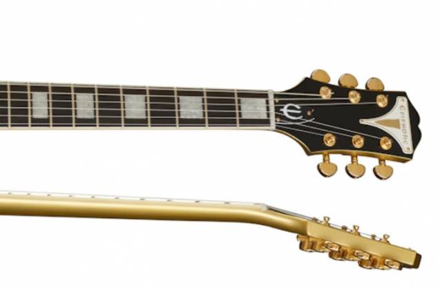 The next generation of "Kat" archtops featuring ProBucker™ FB720 mini humbuckers, the new UpTown Kat™ ES Collection is the next generation of Epiphones classic Kat archtop and features a true ES style semi-hollowbody archtop with newly designed Epiphone ProBucker™ FB720 mini humbuckers™, Graph Tech® nut, Ebony fingerboard, and Grover® Rotomatic tuners. Available in Sapphire Blue Metallic, Ruby Red Metallic, Emerald Green Metallic, and Topaz Gold Metallic.