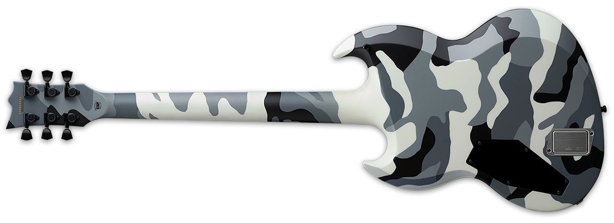 If you've been wanting a premium edition of ESP's famous asymmetrical double-cut Viper shape, the E-II Viper is here. Built in Japan, it includes a number of features that put it high above the rest, like set-thru construction with its mahogany body and neck, and components like its bone nut, Schaller Straplocks, Gotoh locking tuners, and Gotoh TOM bridge and tailpiece. Available in both Black and Urban Camo finishes, the E-II Viper also includes an EMG 66TW/57TW pickup set with separate push-pull controls on each control knob for coil splitting each pickup individually.