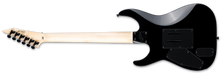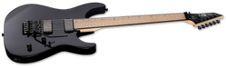 The LTD Deluxe M-1000 Maple offers an alder body, a three-piece maple neck, 25.5” scale, black binding on the neck and headstock 24 extra-jumbo stainless steel frets, black offset dot inlays, a compound radius fingerboard (scalloped fingerboard from frets 17-24), a Floyd Rose 1000SE tremolo with stainless steel screws, Grover tuners, and a set of direct-mount Fishman Fluence Modern 3-Voice Humbucker pickups with push-pull controls to access their voicings.