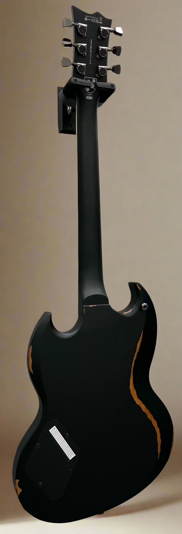 ESP LTD Volsung Lars Frederiksen Electric Guitar, Distressed Black Satin LVOLSUNGDBLKSE SERIAL NUMBER W23071042 - 7.4 LBS