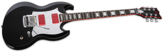 Glenn Tipton is part of the legendary twin-guitar tandem that makes up the iconic metal band Judas Priest. His LTD GT-600 Signature Series guitar offers the look, feel, and sound that powers the Judas Priest music which has influenced multiple generations of rock guitarists. Based on the ESP Viper shape, the GT-600 starts with a set-thru neck, allowing for smooth and fast access to the highest frets. It gives you the classic combination of a mahogany body and 3-piece maple neck, along with an ebony fingerboard with 24 extra-jumbo frets. The sound of the GT-600 is powered by Glenn’s own active EMG signature pickup set, along with performance tools like a Kahler Hybrid tremolo. The GT-600 looks as great as it sounds, with red pickup covers and neck/headstock binding, and a killer mirror pickguard to match the rest of its chrome hardware. Available in Black finish.
