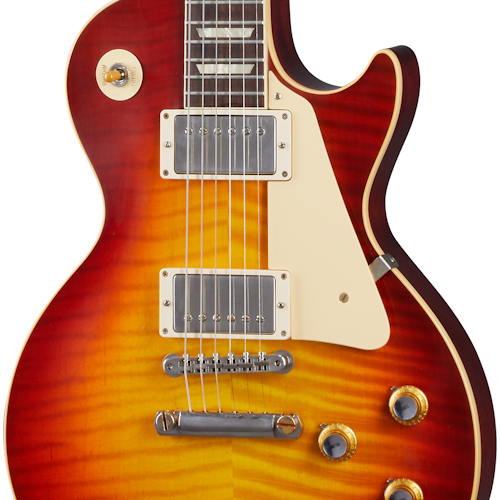 1960 was the last year for the original Les Paul™ Standard, nearly identical to a 1959 model except for a few specs. Most notably, it features a fast-playing slim neck profile, beloved by the many famous musicians who played '60 Bursts including Eric Clapton, Joe Walsh, and Paul McCartney. It also has "reflector" Volume & Tone knobs and wider "double-ring" tuner tips. The Custom Shop 1960 Les Paul Standard Reissue is a clone of the originals from the hide-glue construction to the chemically re-engineered plastic parts. Each one is built with extreme care, reverence and attention to detail by expert Custom Shop craftspeople who are committed to providing an authentic vintage ownership experience. It also features Ultra Light Aging by the skilled artisans of the Murphy Lab. The Murphy Lab Ultra Light Aged finish treatment, paired with lightly aged hardware, simulates decades of light play wear, giving it the unique character, vibe, and feel of an original example from the Gibson Golden Era.
