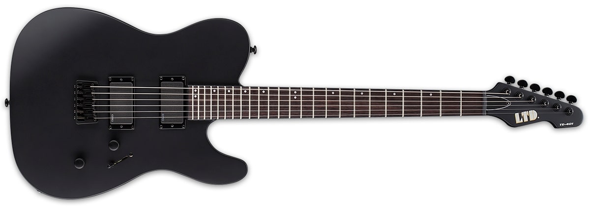 A classic shape gets updated with tons contemporary vibe and modern performance feel! The LTD TE-401 is a mahogany body shred machine that's great for hard rock, metal, and other aggressive music genres. It includes set-thru construction, with a thin U-shaped maple neck and a pau ferro fingerboard with 24XJ frets. Active electronic pickups give the TE-401 a powerful variety of tones, with EMG 60 (neck) and EMG 81 (bridge) pickups. High-quality components include Grover tuners, and it's offered in menacing Black Satin and Snow White Satin finishes.