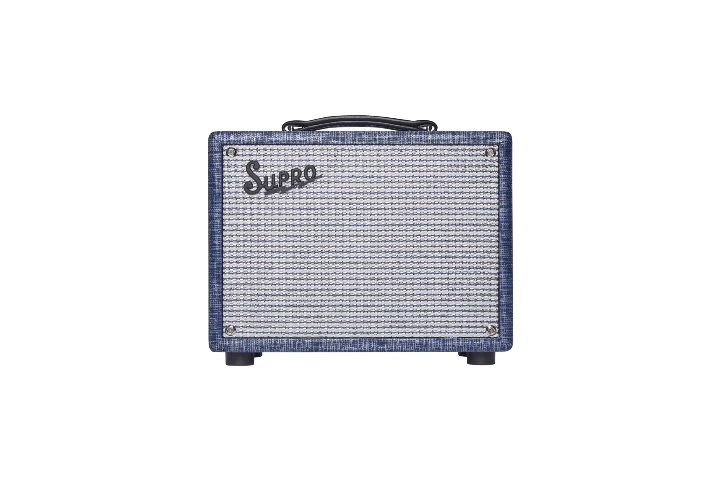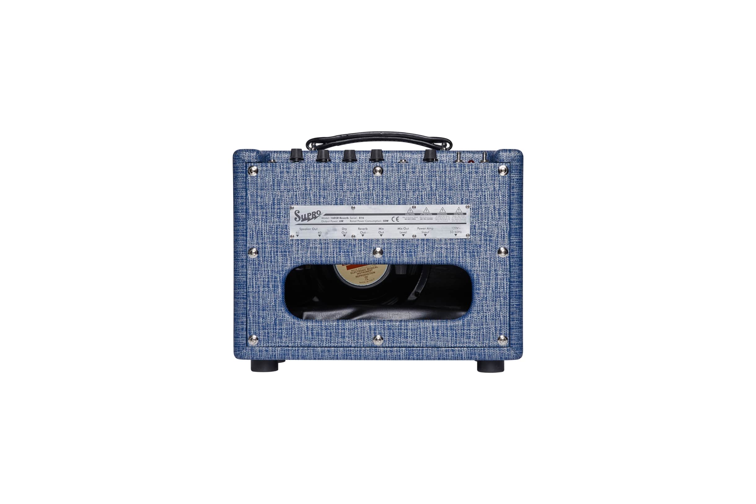 The '64 Reverb is a 5-watt, 1x8 combo amp featuring tube-driven spring reverb. This ultra-compact and gig-ready amplifier provides independent gain and master volume controls, along with a 2-band EQ for maximum flexibility. Three line outputs optimized for feeding another guitar amplifier or recording console are driven by the preamp tubes before the master volume, allowing the player to tame the on-board speaker from rock gig to bedroom rig, as well as easily utilize the all-tube outboard gain/reverb as an effects unit or direct recording preamp. Now featuring an 8-inch Jensen C8R speaker for compact, solid tone regardless of environment. JENSEN C8R SPEAKER Now featuring the legendary 8-inch Jensen C8R speaker for balanced, solid tone with sparkling highs. Responds beautifully to overdrive and distortion with a bright fuzz lead voice. Perfect for both quiet at-home tone and getting brash in the recording studio. 6V6 TUBE TONE + LINE OUT All the pristine high-gain audio of a Class A, 6V6-equipped, single-ended, 5-Watt power amp, plus tube-driven analog spring reverb. Ideal for use as an effects unit or direct recording preamp via three line outputs located before the master volume. PREMIUM LOOK AND FEEL Custom Blue Rhino Hide tolex, our Supro Silver/Blue grill cloth, engraved headplate, white piping and a dog bone handle create a premium feel and lifelong durability.